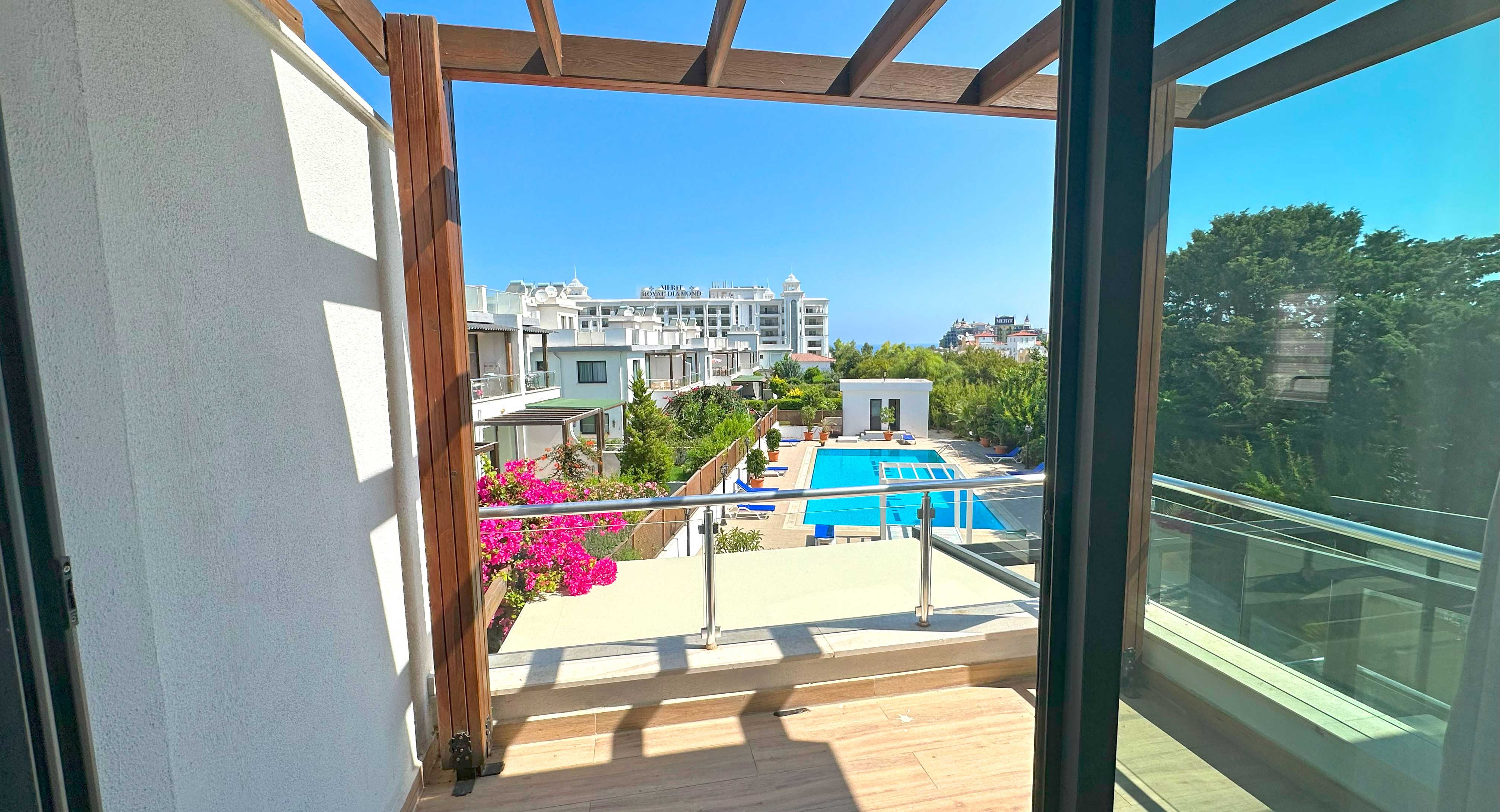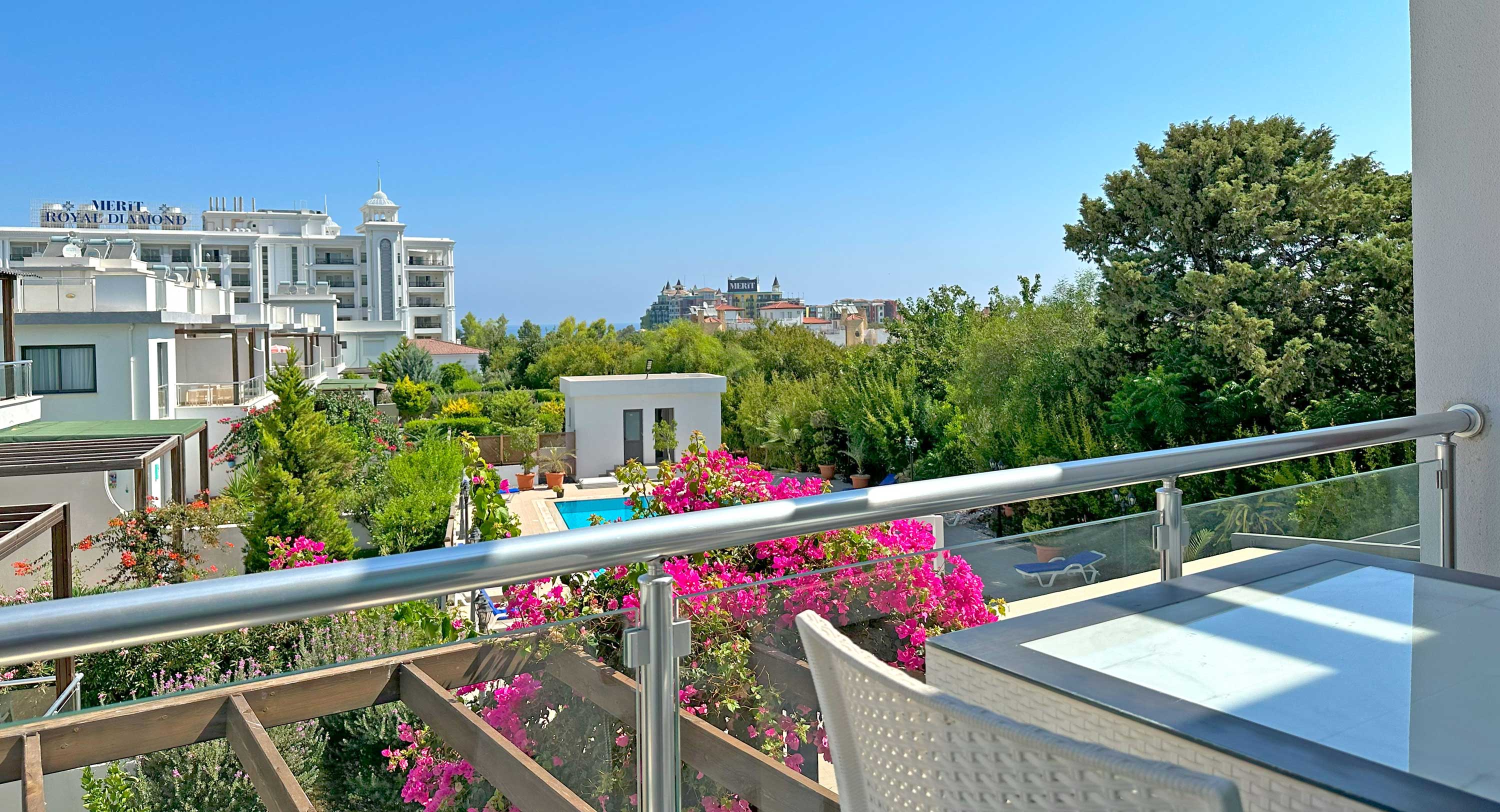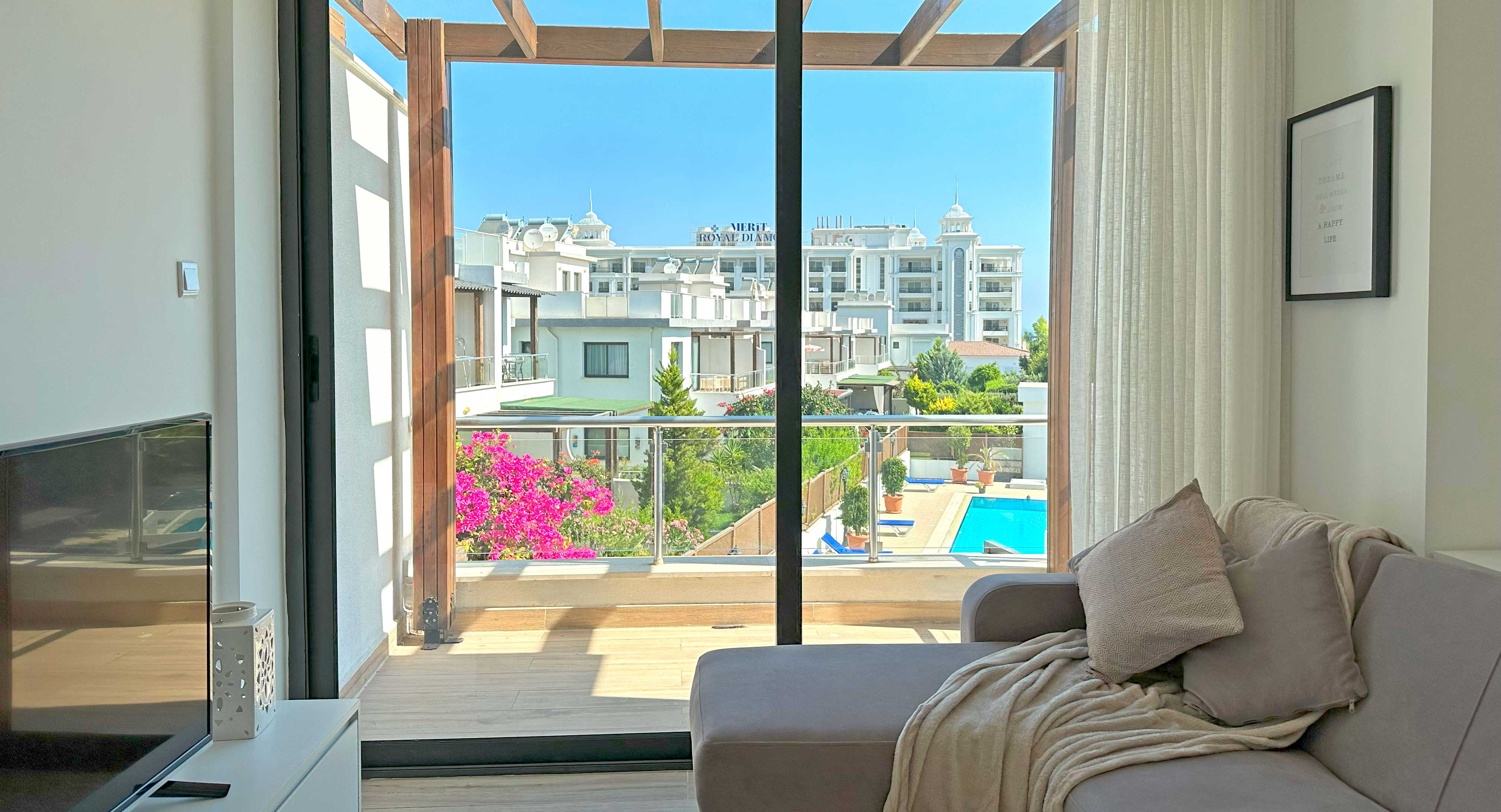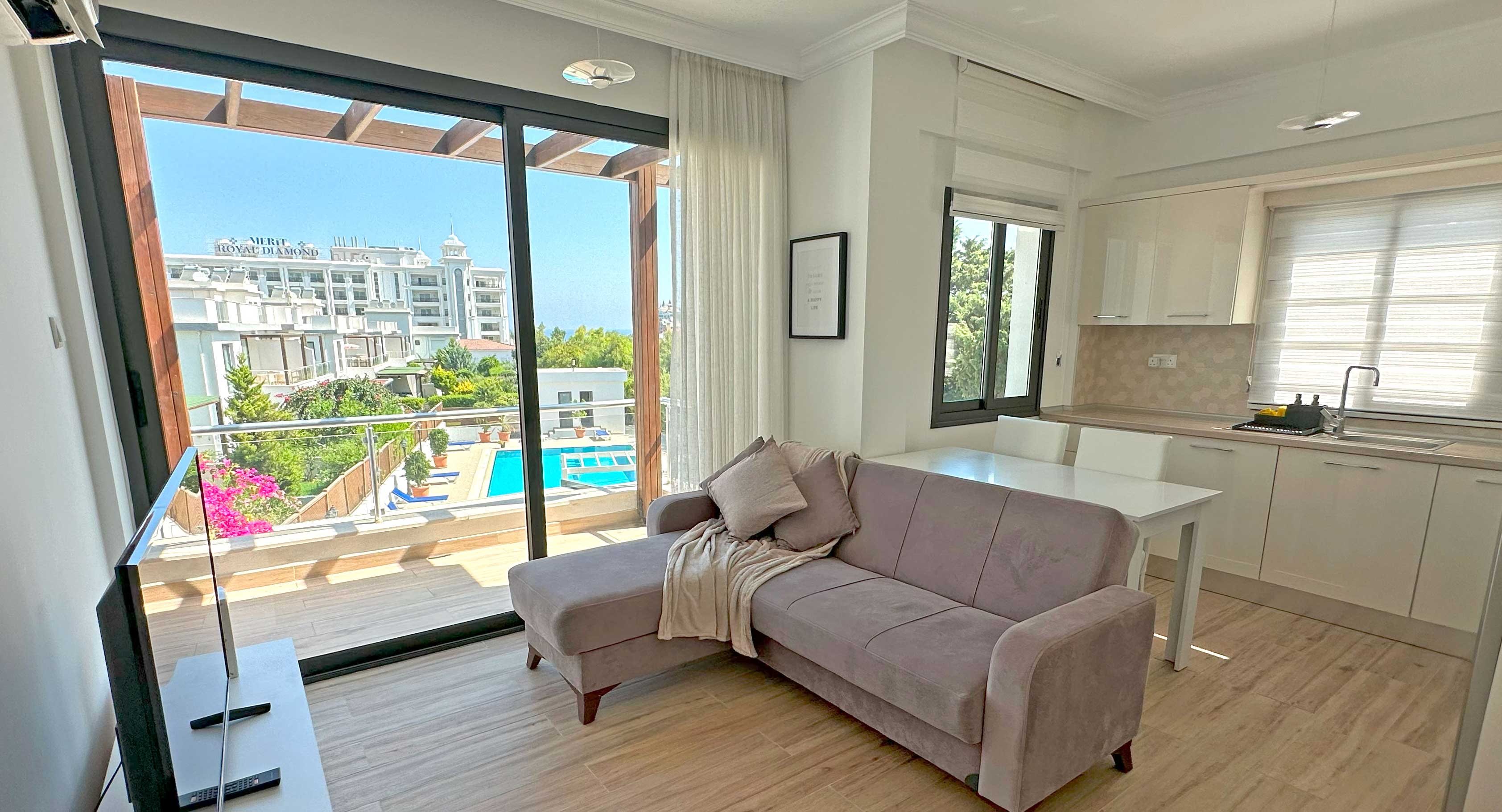Our Pool-view aprtments apoffer a delightful experience with a balcony overlooking the sparkling pool. Selected suites even offer partial sea views, adding to the enchantment. Inside, you'll find a dining area, a cosy sofa, a comfortable double bed, and a refreshing shower, making your stay memorable. Plus, you'll also get beautiful green views from the bedroom.